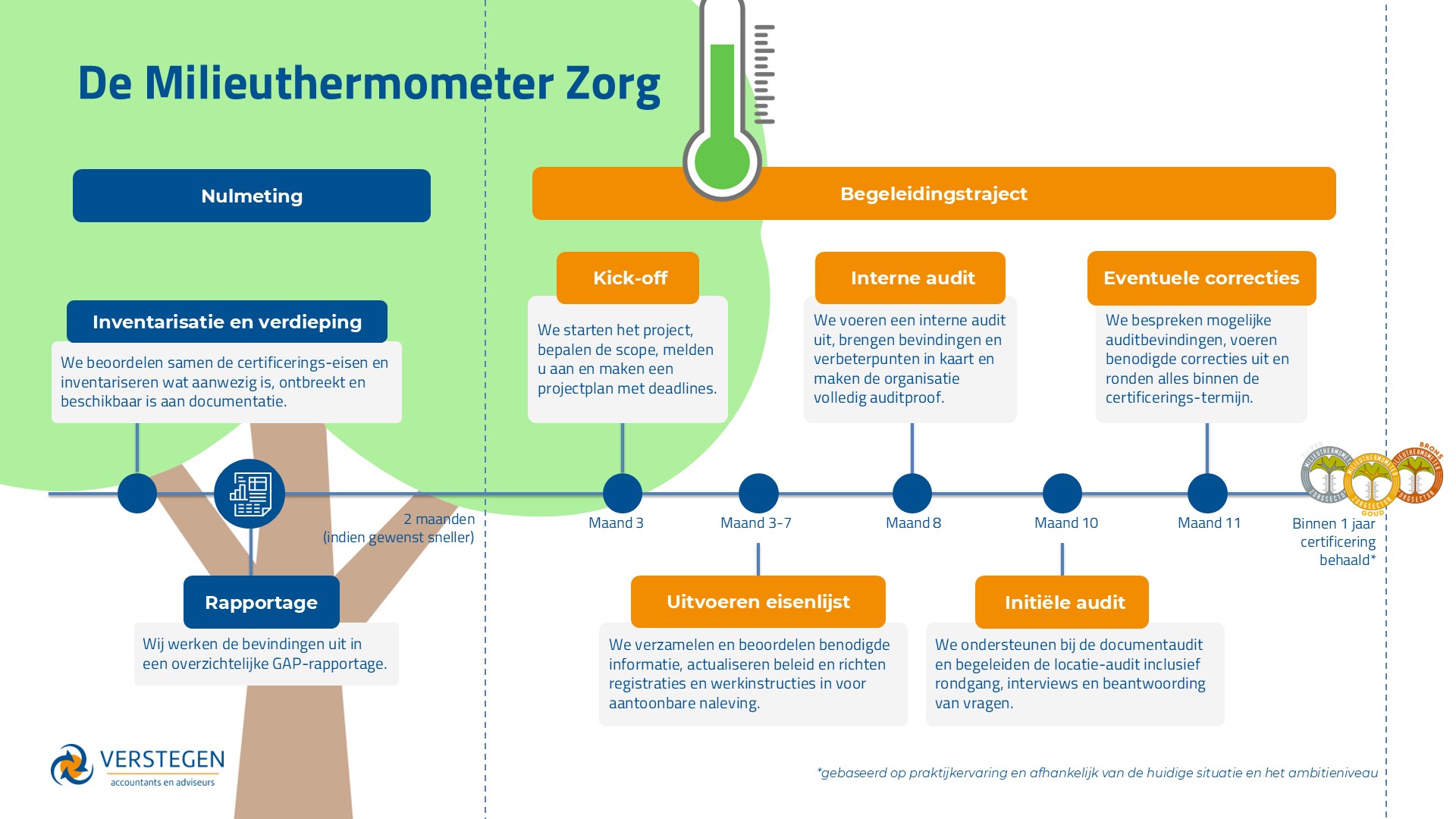 - ESG-certificering voorbereiden, aanvragen en implementeren (zoals De Milieuthermometer Zorg)